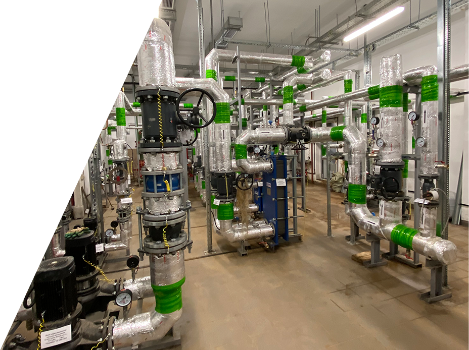 ИТП общей тепловой мощностью 1,7 Гкал/час. Потребители: Системы отопления, вентиляция+ тепловые завесы, двухступенчатая ГВС